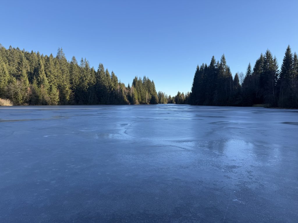 Nebylo to až takové překvapení, ale velmi příjemné bylo to, že na Jiřičáku je velmi hladký led. O síle se ani nebudu zmiňovat, nedá se zjistit. Po poledni bylo vyloženě letní vedro, přesto se dalo bruslit. U pravého břehu, kam svítí slunce, bylo několik malých míst, kde se brusle zabořovaly, od 15:30 to bylo tvrdé úplně všude.